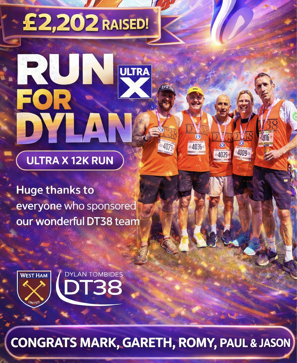 As Vice- Chairman of West Ham United Football Club, I am very proud that Dylan wore our famous Claret and Blue. My board and I cherish the longstanding relationship with his wonderful family and namesake charity, DT38. DT38 is a principal charity of West Ham United Football Club and we will continue to support DT38 in proving testicular cancer awareness through education and opportunities.